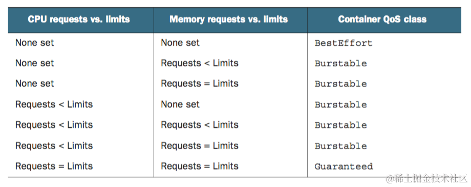 - Guaranteed 适用于请求和上限一致的Pod(limits默认与requests相同),这种Pod不能使用超额的资源,但是会保证存活