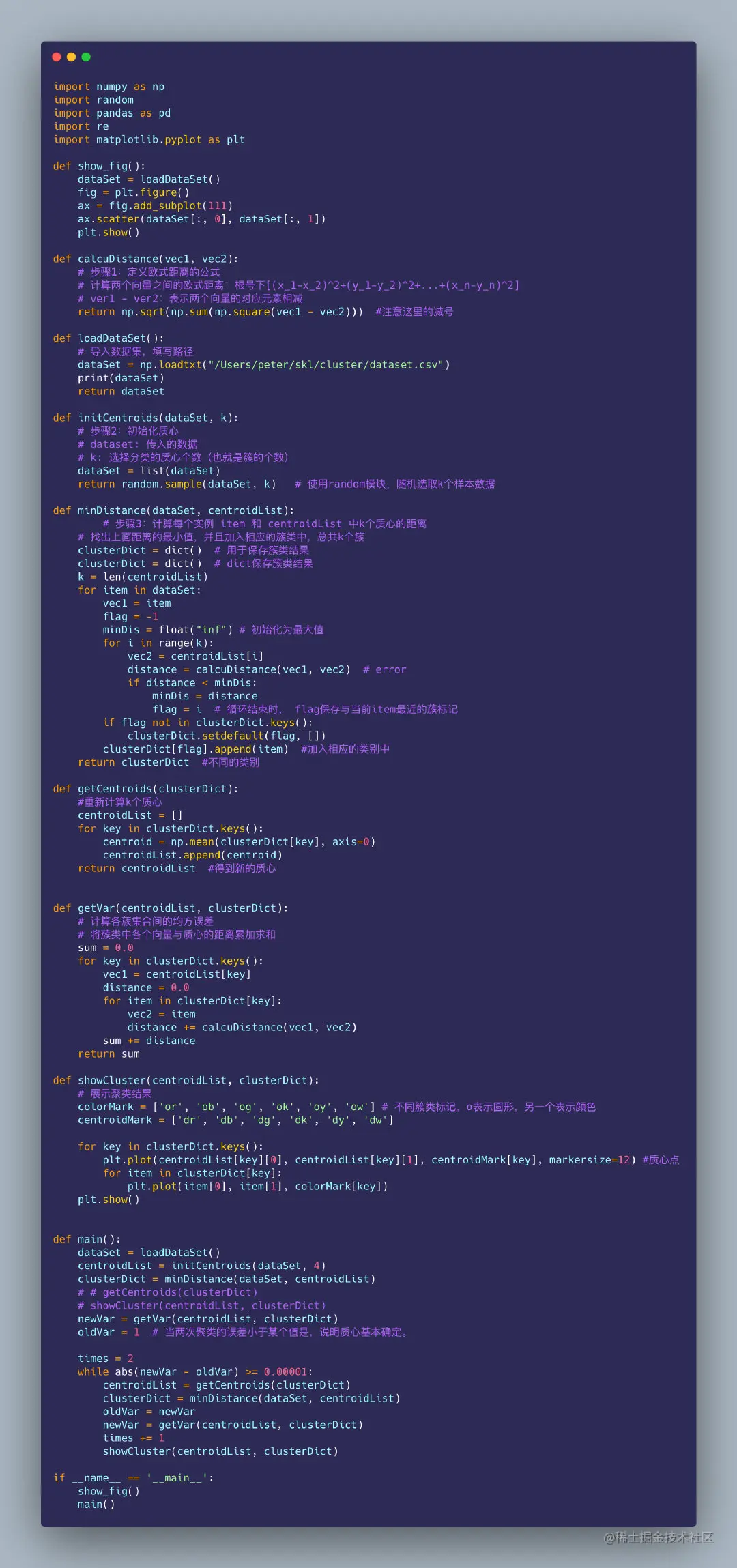 这是在网上找到的一个基于Python找到的`K-means实验算法,学习使用