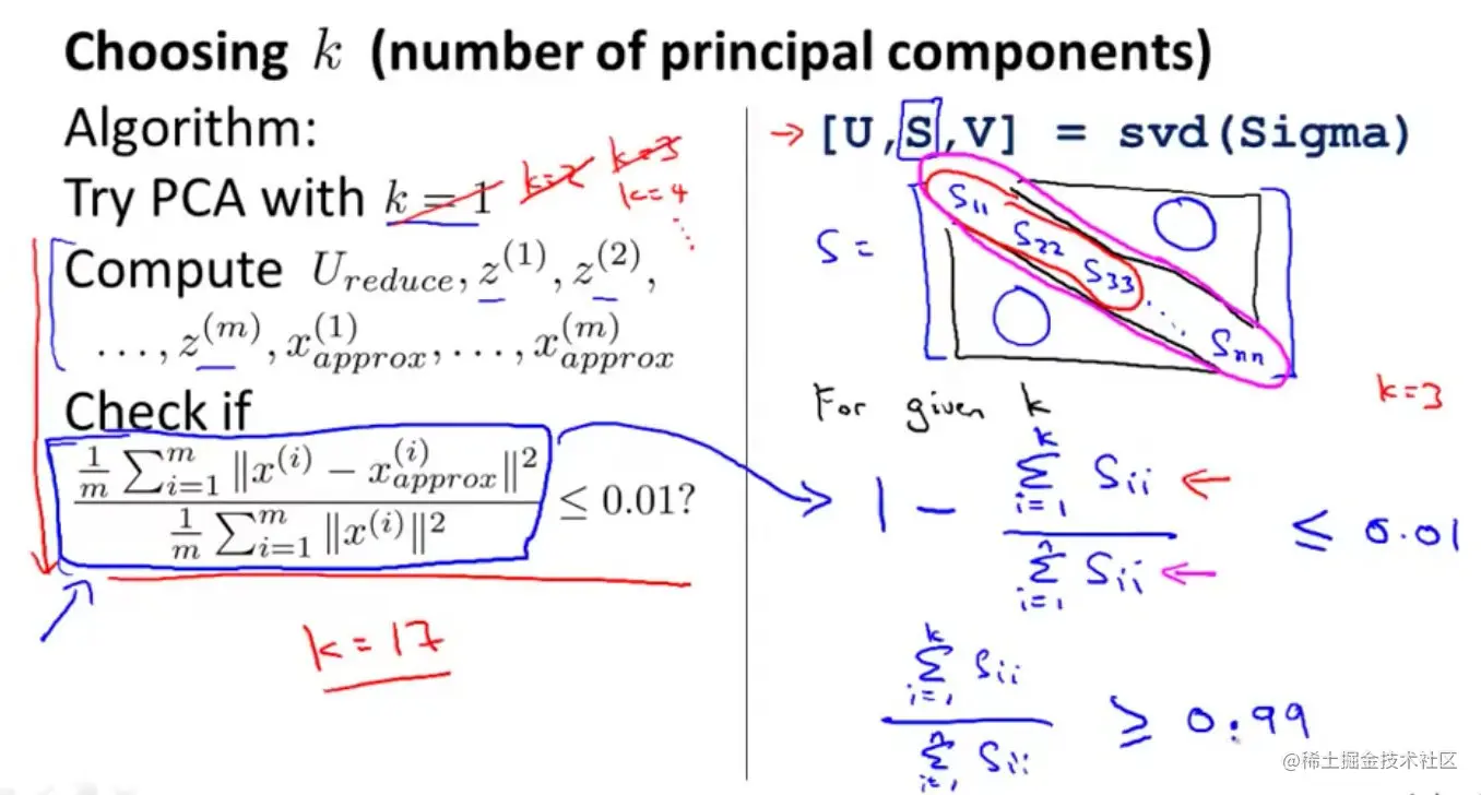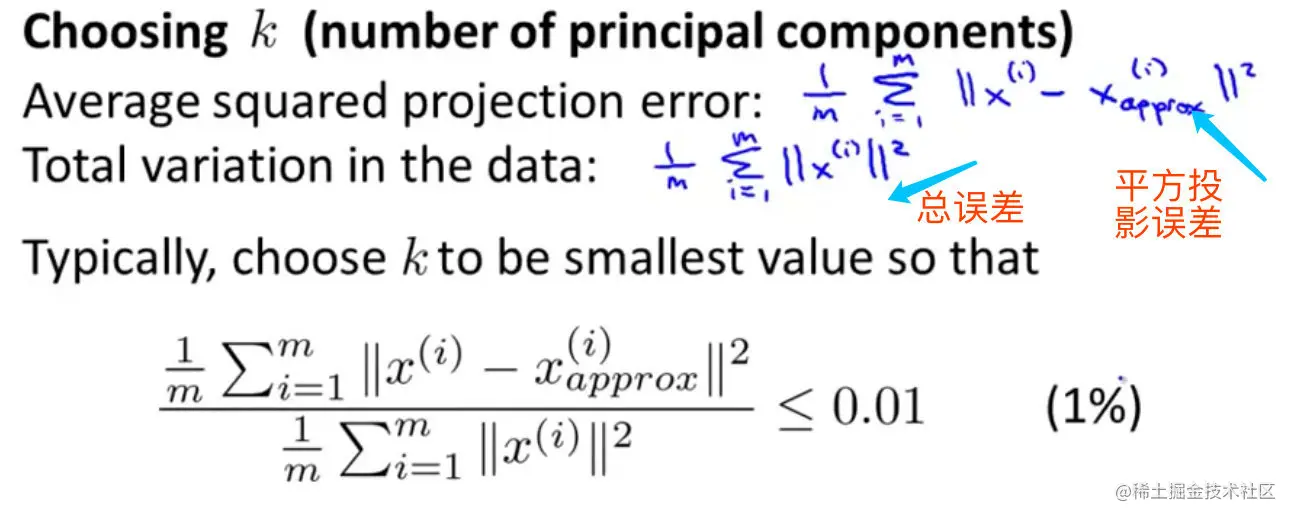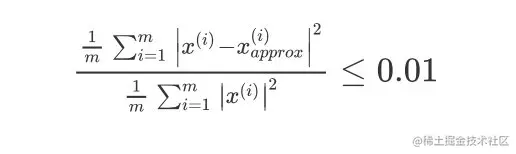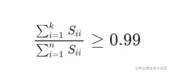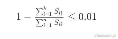 不等式右边的0.01可以是0.05,或者0.1等,都是比较常见的。当为0.01的时候,表示保留了99%的方差数据,即大部分的数据特征被保留了。