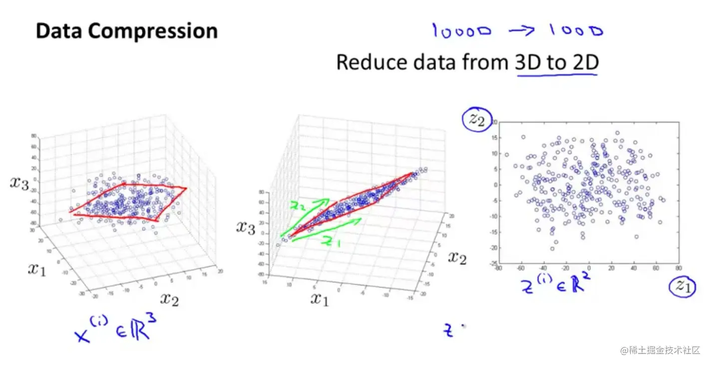 - 这样的处理过程可以被用于把任何维度的数据降到任何想要的维度,例如将