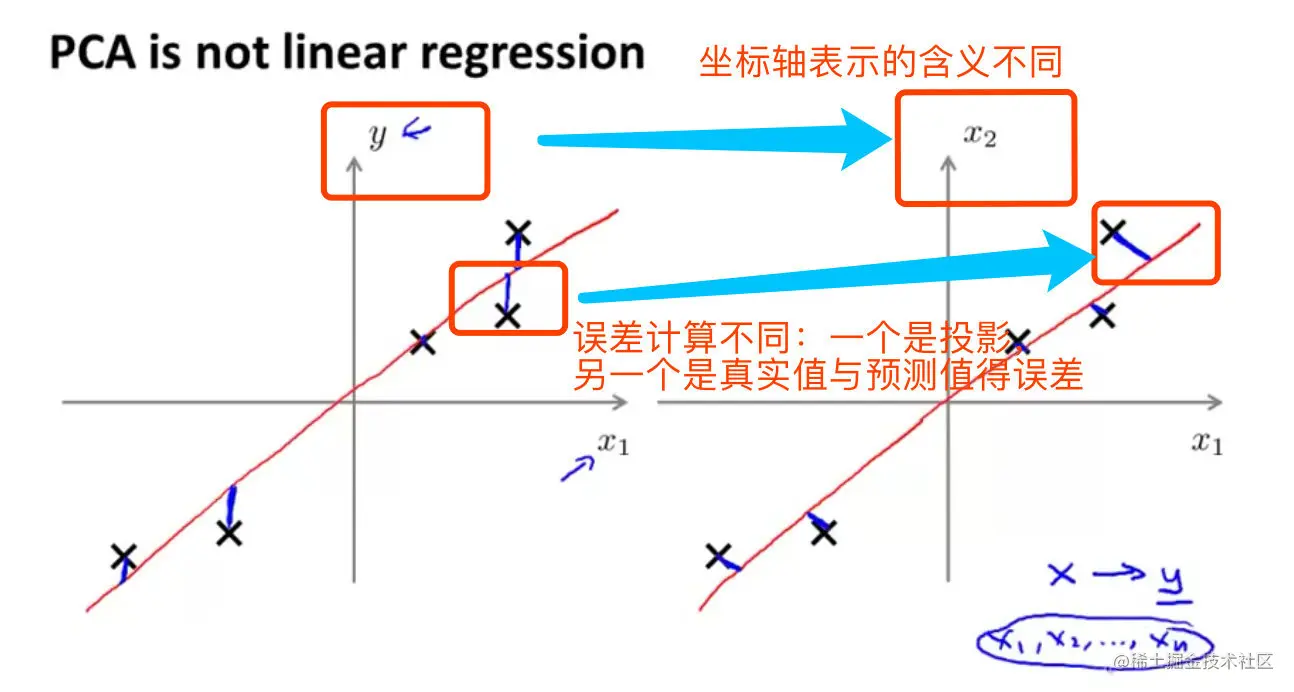 - PCA和线性回归算法的区别