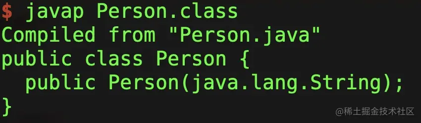 我们对Person类进行编译,得到Person.class文件,然后我们对class文件进行反编译,就可以看到已经出现了一个空的构造器: