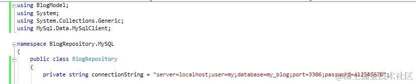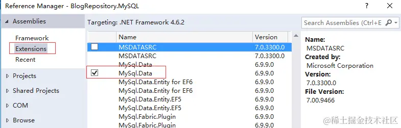 1. 创建一个新的类库项目BlogRepository.MySQL,并引用Mysql.Data(注:Mysql.Data需要安装Connector/NET):