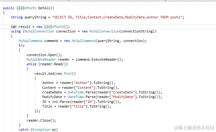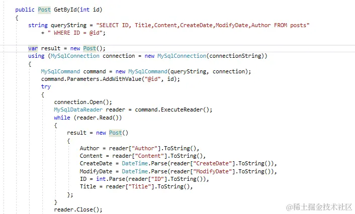 与SQL Server的代码对比,只有对象名称、SQL以及连接字符串存在差异。