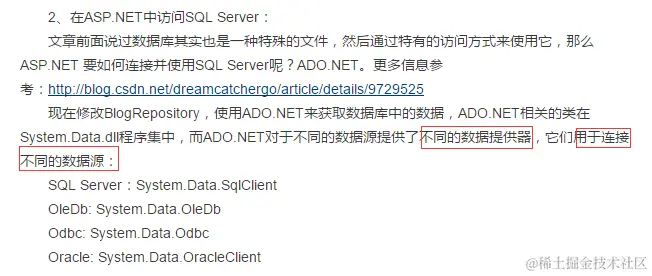 本章介绍了如何在ASP.NET中使用MySQL数据库,它的使用方式与SQL Server基本相同,只需要安装连接My SQL需要的组件即可。另外需要注意的一个问题是,现在在整个解决方案中分别有BlogRepository以及BlogRepository.MySQL两个仓储类库,分别对于SQL Server和My SQL但是逻辑层只有一个,这就意味着每次更换数据库业务逻辑库不仅要更换引用,还要修改代码。这就是典型的依赖实现而没有依赖抽象的问题。这个问题会在后续介绍解决方法。