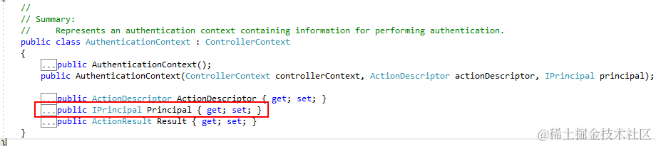 ● 身份验证过滤器(IAuthenticationFilter):这个过滤器是在MVC5中加入的,它是所有过滤器中优先级最高的,使用身份验证过滤器可以为Action、Controller或者所有的Controller添加身份验证逻辑。身份验证过滤器的核心在于根据请求信息创建一个Principal对象(注:使用Identity的身份验证功能实际上也是创建一个Principal对象),以下是IAuthenticationFilter的定义: