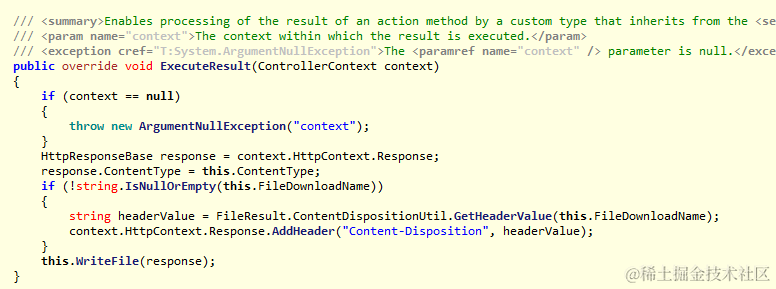 比如FileResult的执行实际上是在Http响应头中添加了适当的参数然后将文件的二进制数据写到了响应体中,相当于文件的下载功能。