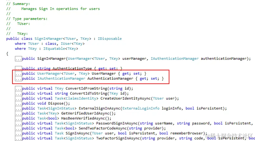 SignInManager用于管理用户的登录逻辑,如登录、使用密码登录、双因子登录、外部登录等等,它是对UserManager与AuthenticationManager的封装: