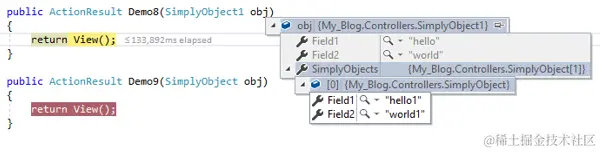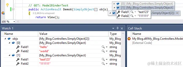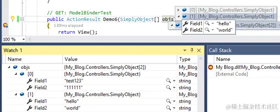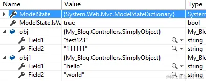 url:http://localhost:52356/ModelBinderTest/Demo8?obj.field1=hello&obj.field2=world&obj.simplyobjects[0].field1=hello1&obj.simplyobjects[0].field2=world1