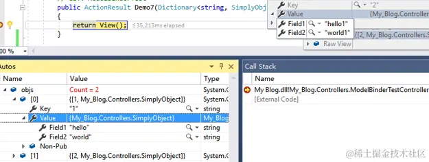 url:http://localhost:52356/ModelBinderTest/Demo7?[0].Key=1&[0].Value.field1=hello&[0].Value.field2=world&[1].Key=2&[1].Value.field1=hello1&[1].Value.field2=world1