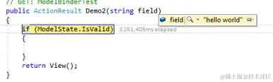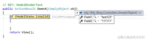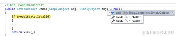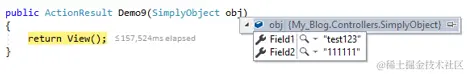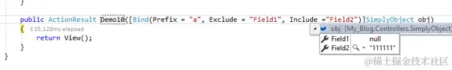 本例通过在路由模板中添加Field1变量信息来获取对象的Field1字段数据,然后从QueryString中获取了Field2字段数据,证明一个对象中的数据可以来自于不同的数据源。