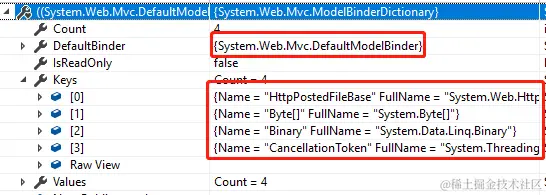 Controller中的ModelBinder字典包含了上面介绍的5个ModelBinder。更多关于自定义ModelBinder的内容可参考:www.cnblogs.com/Cwj-XFH/p/5…