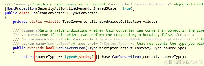 2. 获取到类型转换器后,通过转换器判断该类型是否能够从字符串转换,如果能那么它就是简单类型否则为复杂类型。(下图为TypeConverter的部分定义)