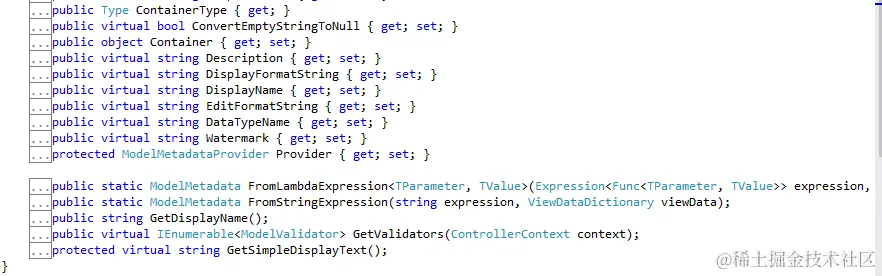而在MVC里面是通过ModelMatedata来对Model进行描述的,先看一下ASP.NET MVC中的ModelMetadata类型: