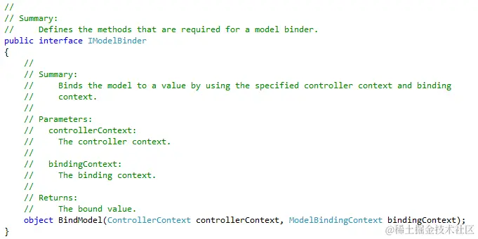 该接口只有一个方法,那就是根据控制器以及绑定上下文完成模型绑定。