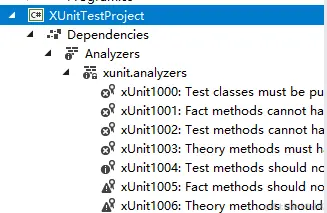 xUnit测试项目还提供了相应的代码分析器来帮助编写测试代码: