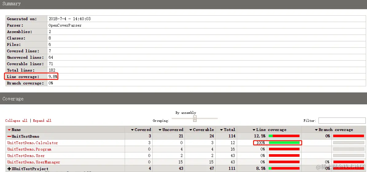 对于xUnit.net来说,要分析测试代码覆盖率还可以通过“OpenCover”和“ReportGenerator”工具完成,下面就介绍如何通过这两个工具完成代码覆盖率的分析: