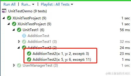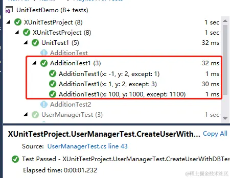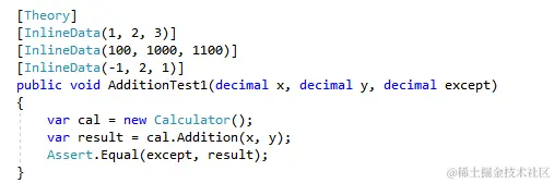 Theory和InlineData是xUnit.Net中提供的数据驱动(参数化)测试的功能特性,下面是一个theory以及InlineData的应用示例: