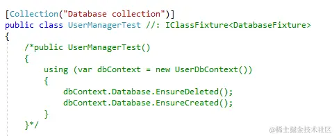 首先需要在DatabaseFixture的基础上添加一个实现ICollectionFixture的类型: