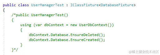 从代码中可以看到通过构造方法初始化的代码已经被注释了,实现IClassFixture接口后,再次执行测试方法,可以看到测试仍然是可回归的。