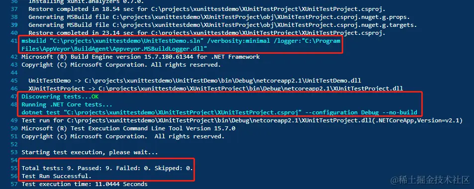 从编译结果可以看出Appveyor不仅仅是完成了编译工作,而且还搜索了测试信息,并完成了测试。另外有一个要点是本项目中的测试是依赖数据库的,这就意味着Appveyor的编译环境提供了SQL Server数据的支持。