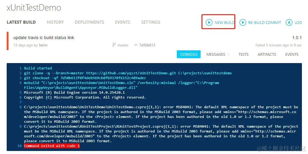 另外本文还介绍了在Github上使用Appvoyer和Codecov工具实现了简单的持续集成,当把新代码推到GitHub仓库时,Appvoyer会自动的完成一系列构建操作。Appvoyer是一个非常强大的CI工具,对C#的支持也非常好可以选择VS版本(包括预览版),多种数据库(包括Linux下的SQL Server),所以在执行测试时依赖数据库的测试也能通过。