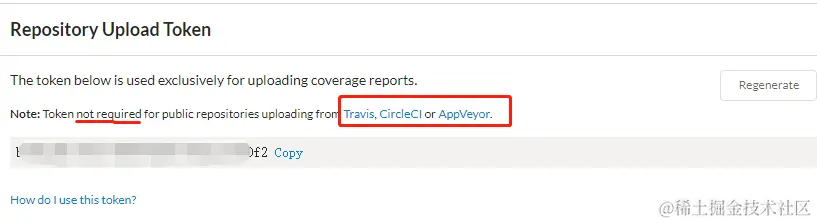 注:安装完成Codecov后,会有一个Upload Token用来将代码覆盖报告上传到Codecov,但Appveyor的公共仓库可以不需要: