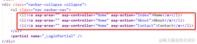 1. 引入了TagHelper,使用TagHelper可以让View的代码更接近Html。更多TagHelper信息参考文档:docs.microsoft.com/en-us/aspne…