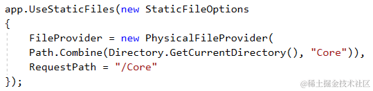 默认的无参UseStaticFiles方法将wwwroot目录作为静态资源存放目录,如果要添加其它静态内容目录可以再次使用UseStaticFiles方法,并通过StaticFileOptions对目录的访问路径以及实际路径进行配置: