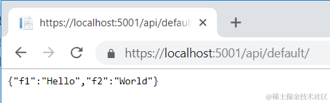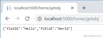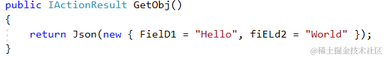 这里有一个需要注意的地方是当使用Json方法返回一个对象实例时,默认使用首字母小写的驼峰命名方式序列化实例的属性名称,如下图所示: