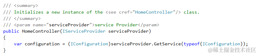 2. 通过Controller注入IServiceProvider类型,通过IServiceProvider来获取服务: