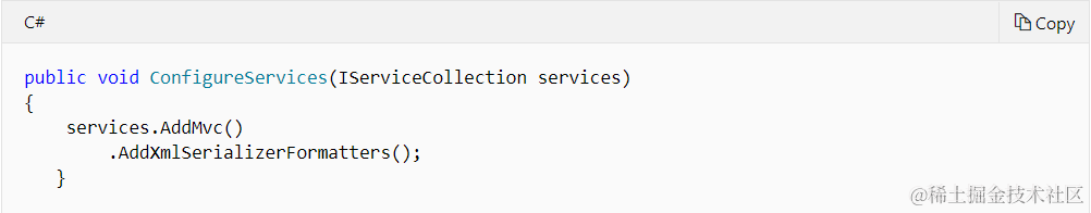 需要注意的是[FromBody]默认只支持Json格式的内容,如果需要支持其它格式,如XML需要添加相应的格式化器,添加方法如下图所示:
