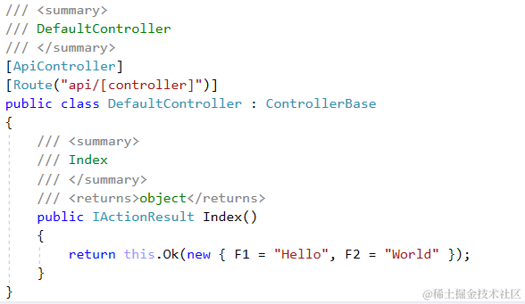 用ASP.NET Core开发WebAPI时,Controller类型直接继承ControllerBase。然后这个API的Controller就具有了基类的特性,返回一个结果仅需要使用Ok方法即可,如下图所示: