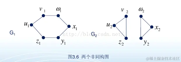 若删去z1和u1,删去v1和w1,连接z1和w1,成为一个v1u1的链和z1w1x1y1的环,依旧不是同构图,因为必须环数相同,链数相同。