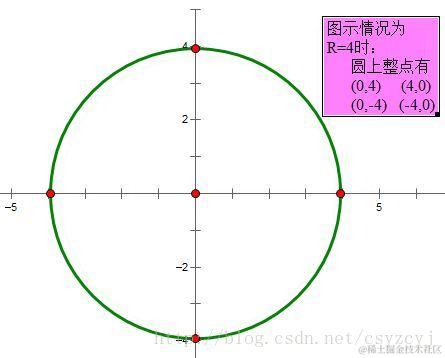 求一个给定的圆(x^2+y^2=r^2),在圆周上有多少个点的坐标是整数。