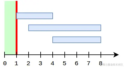 Most of the time it's sunny in Sweetland, but sometimes some caramel clouds come, the i-th of which will appear at time moment (minute) l**i and disappear at time moment r**i. Of course, the clouds make shadows, and the seedlings can't grow when there is at least one cloud veiling the sun.