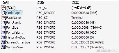 在HKEY_CURRENT_USER\Console\%SystemRoot%_system32_cmd.exe中找到CodePage。
