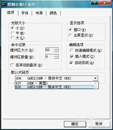 1.右击cmd窗口,点默认值。在选项中默认代码页,选择936。