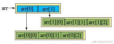 15 arr[0]=new int[10];//arr[0]指向另一个一位数组