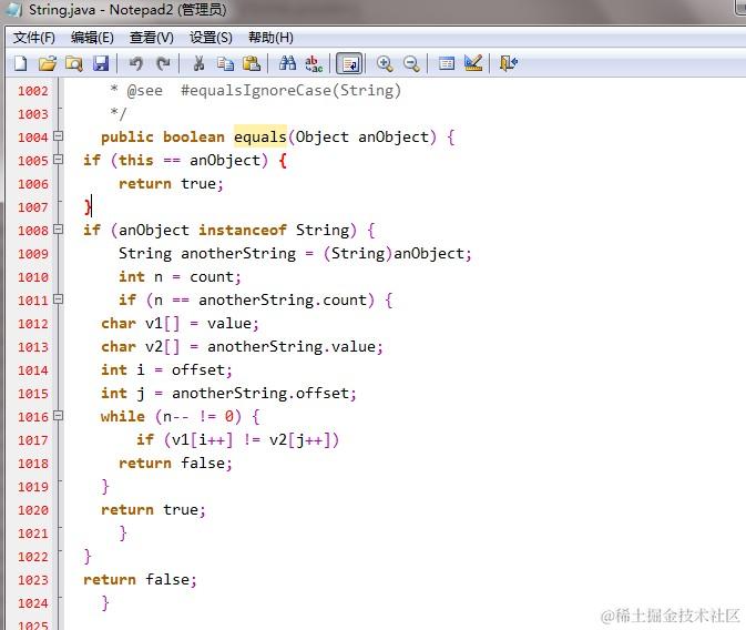 下面是String类中equals方法的具体实现: