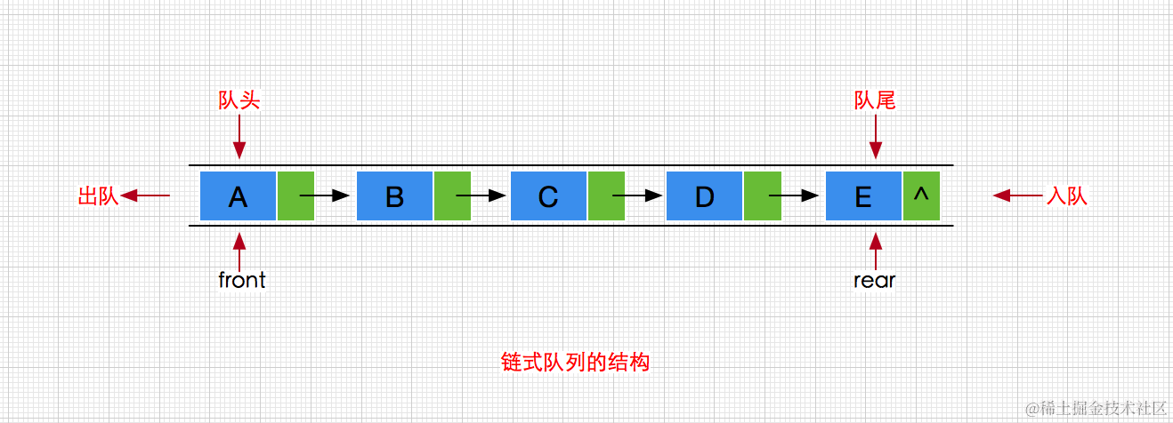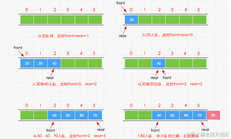 front为队头元素的下标,rear则指向下一个入队元素的下标