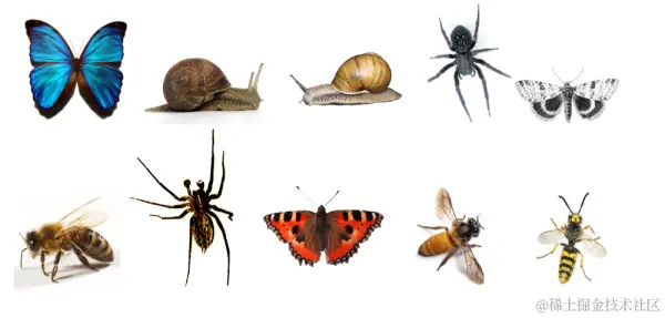 完成了吗?尽管这里并不一定有所谓的「正确答案」,但一般来说我们可以将这些虫子分成四组:蜘蛛、蜗牛、蝴蝶/飞蛾、蜜蜂/黄蜂。