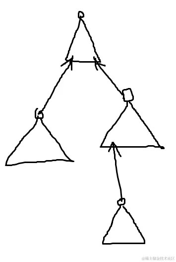 可以把LCT认为是一个由Splay组成的森林,就像这样:(三角形代表一棵Splay,对应着LCT上一条链)