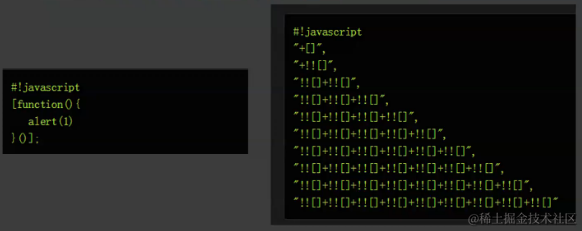 这是我入门Web开始写的第一道题,what a fuck!第一眼看到这名字,特别惊讶,到底是什么东东呢?点开来一看,还真是:一堆由"[","]","{","}","(",")","!","+"组成的长串,看起来特别头疼,如果有了解的同学,一眼就可以看出来,这是一段jother编码,我简单介绍一下jother编码,jother是一种运用于javascript语言中利用少量字符构造精简的匿名函数方法对于字符串进行的编码方式,其中少量字符包括"[","]","{","}","(",")","!","+"。只用这些字符就能完成对任意字符串的编码,本质上是一种javascript的编码,缺点我们也看到了,编码极其冗长和复杂~~~