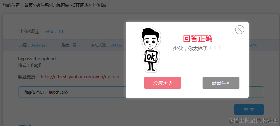 恭喜你获得flag一枚,咱们只需要提交这个flag就可以完成此题