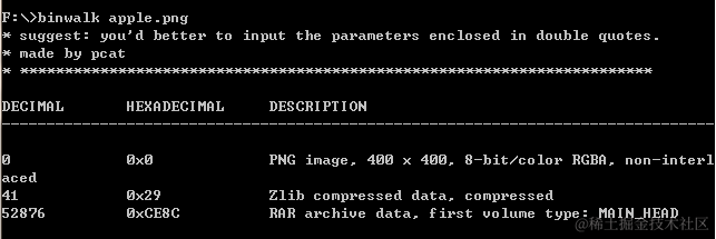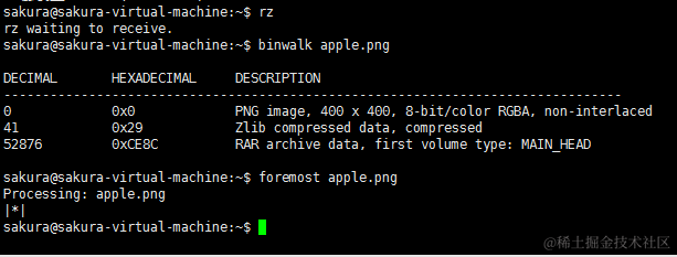 这是一串密码,显然不是题目的最终答案,为什么呢,这题目还是有一定难点的,这时候我们应该对这个图片进行进一步的分析,这时候我们需要用到一个工具,叫binwalk,binwalk的安装使用参照pcat大神写的文章