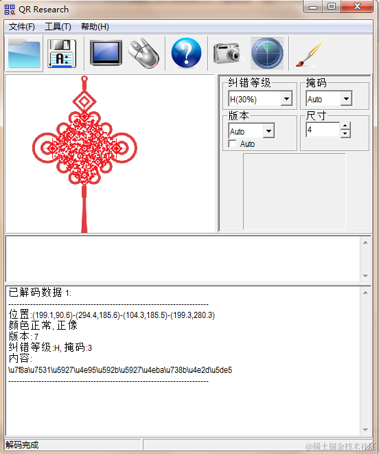 我们先下载这个图片,用QR_Research去打开图片扫一扫,解码以后,我们出现了这样的样式信息!!!