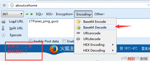 发现是像代码一样的文字,它是一个的一个解码,我们只需要扔进火狐的一个插件
