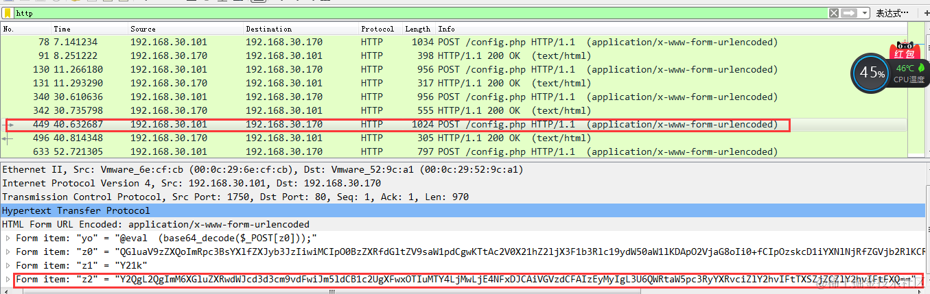 这是一个菜刀的包,这个包里面是由Base64进行加密,所以我们可以看下这个包里面的一些东西