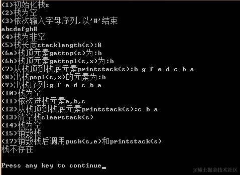 47 cout<<"(15)销毁栈"<<endl;